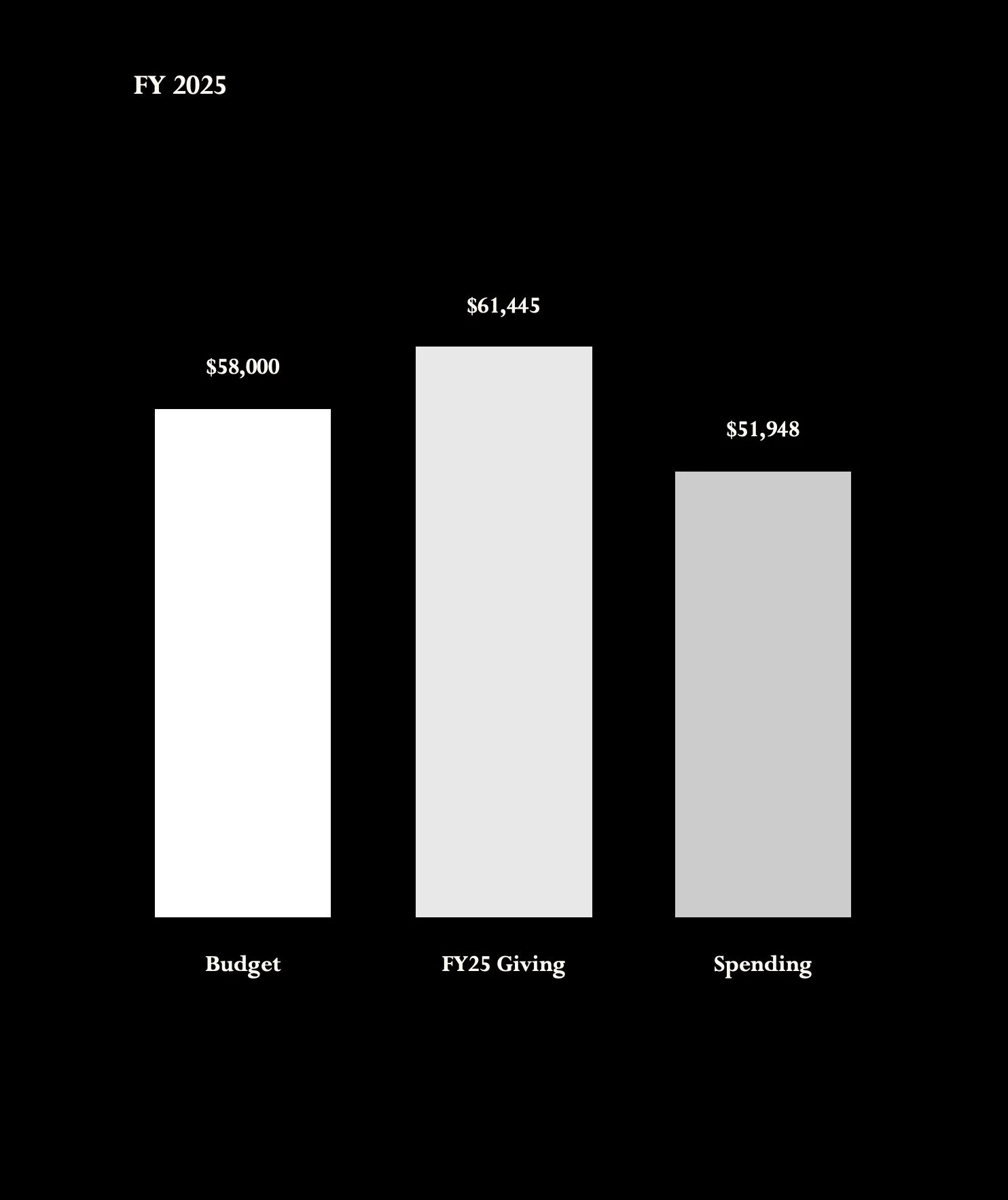Our total budget for 2025 was $58,000. Giving came in at a total of $61,445. Of that number, $8,578 came from support of individuals outside the community. Actual spending reached $51,948. We ended up 2025 with around $10,000 of surplus in the bank to go towards the 2026 budget.